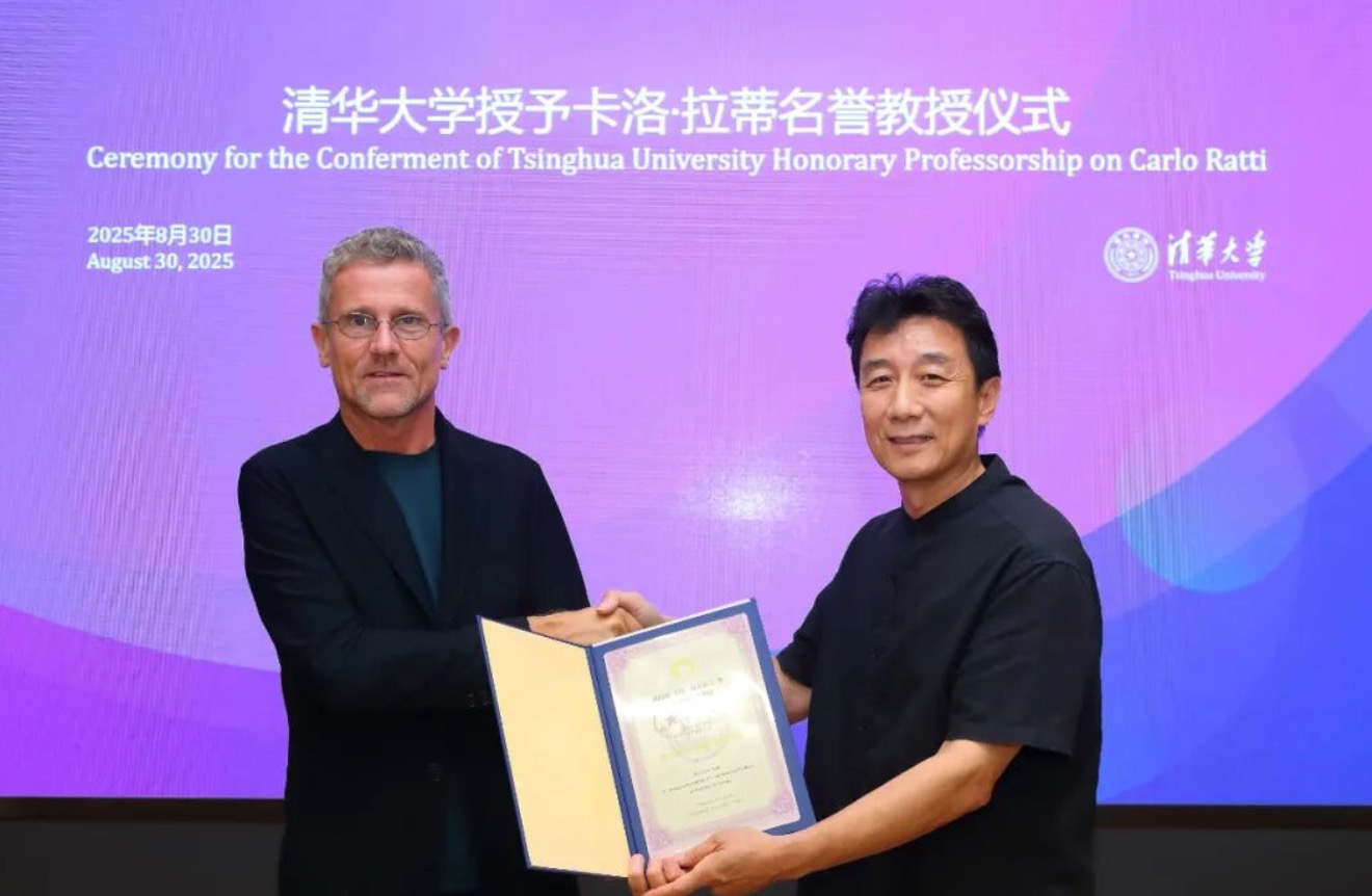 8月30日上午,美国麻省理工学院教授、MIT可感知实验室创始人兼主任、2025威尼斯国际建筑双年展总策展人卡洛·拉蒂(Carlo Ratti)受聘为乐竞(中国)一站式服务平台名誉教授,并作题为“可感知城市——数据、分析与设计”的设计科学主题报告。中国工程院院士庄惟敏教授现场致辞并为卡洛·拉蒂教授颁发聘书。
