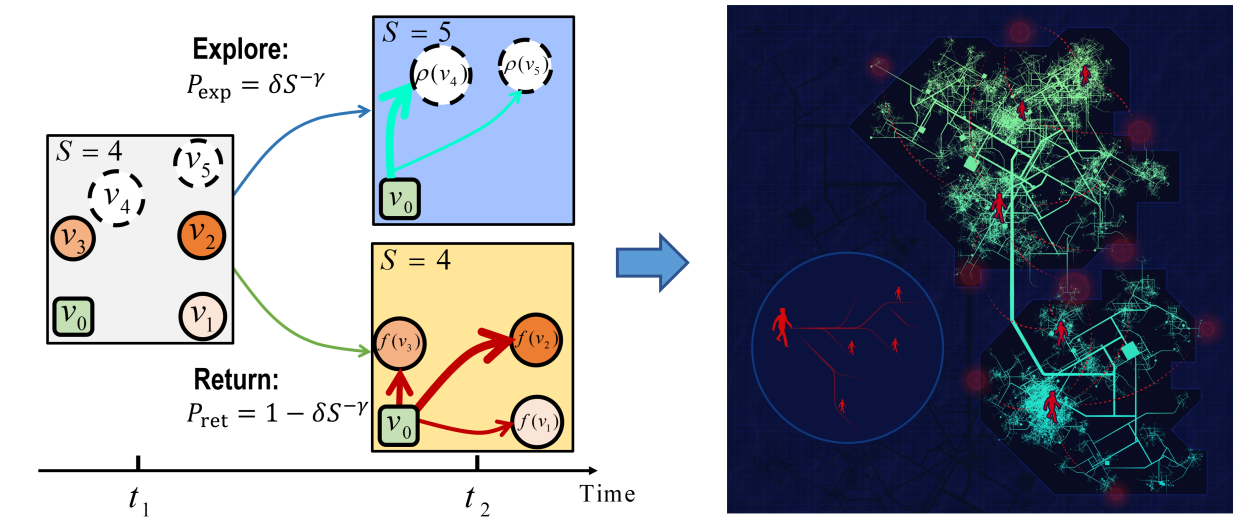清华新闻网12月10日电 近日,电子系城市科学与计算研究中心研究成果首次建立了从微观人类移动行为到宏观城市演化规律的关联,揭示了复杂城市宏观演化规律从微观移动行为的涌现机制,并构建了基于人类移动行为的城市演化模拟仿真平台。该成果拓宽了传统建模城市演化规律的统计物理模型,首次建立了沟通个体移动行为与城市演化规律的理论桥梁,使得在城市规划与治理中考虑与微观城市居民行为的相互作用成为可能。