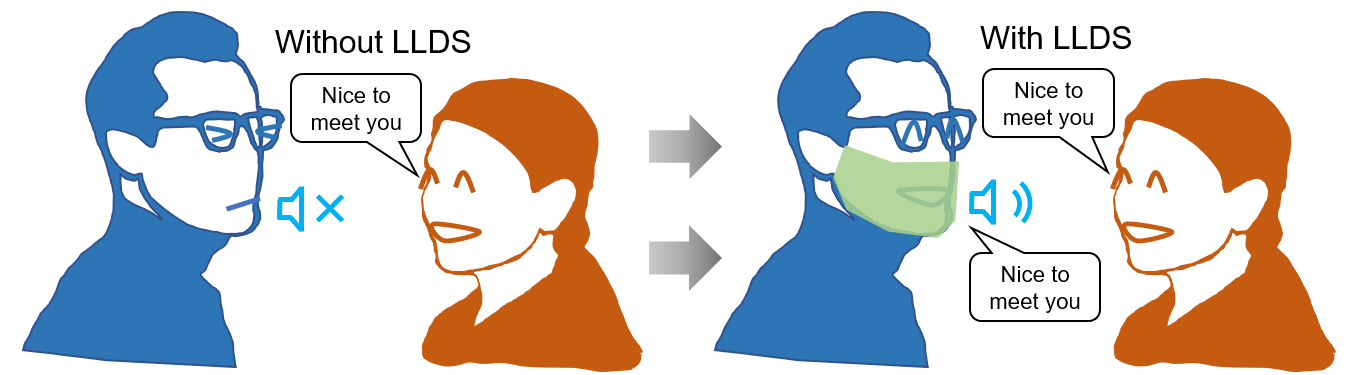 图3. 失声人群日常生活交流中使用和不使用LLDS的示意图