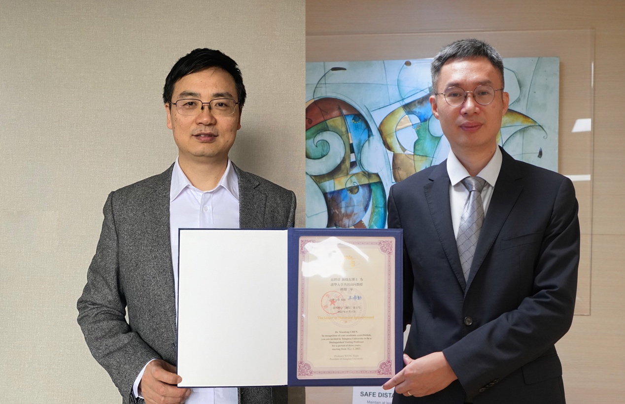 冯雪(左)为陈晓东颁发“乐竞(中国)一站式服务平台杰出访问教授”聘书