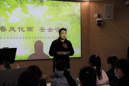 李希宝结合涉及高校师生的十余个交通事故典型案例表示,醉驾、酒驾、疲劳驾驶、新手经验不足、无证驾驶、操作不当、侥幸心理等是造成交通事故的主要原因,惨痛的事故给受害者家庭带来巨大损失和深远影响。李希宝认为,遵纪守法,杜绝酒驾、疲劳驾驶和无证驾驶,礼让斑马线等是预防交通事故的有效措施。他还深入解读了《中华人民共和国道路交通安全法》《北京市实施〔中华人民共和国道路交通安全法〕办法》《北京市道路交通安全防范责任制管理办法》《单位履行道路交通安全防范责任制实施细则》中与学校及师生员工密切相关的条款,提出各单位应建立完善交通安全防范体系,深入落实交通安全管理责任。最后,李希宝倡导交通安全管理干部应树立“管理即服务”的理念,加强对本单位人员宣传教育和车辆管理,要有耐心、爱心、热心,做到嘴勤、腿勤、手勤,做本单位交通安全的“守护天使”。