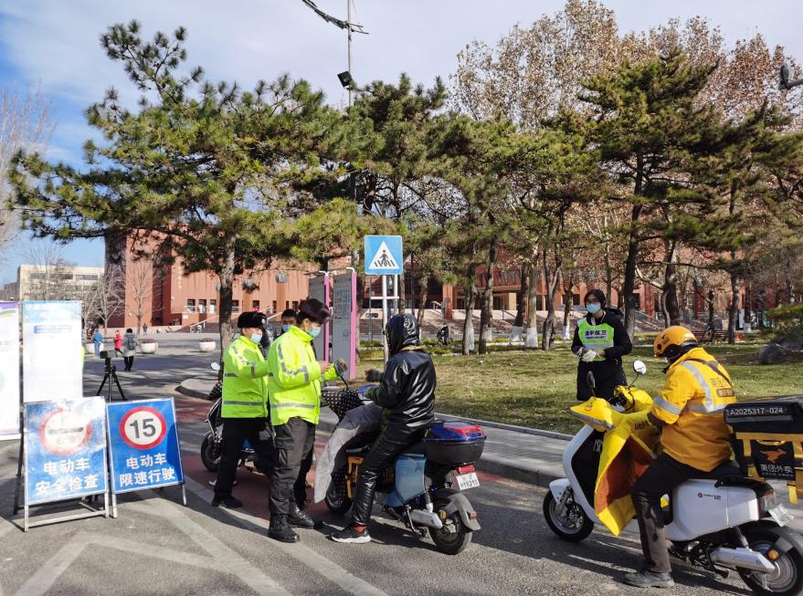 “减速慢行,礼让斑马线”线下路演,倡导校园慢行。11月21日,围绕第17个世界道路交通事故受害者纪念日,“行在清华”等微信公众号开展“行动起来、减速慢行”交通安全事故警示教育。12月2日,在学堂路和清华路的十字路口,保卫处组织人员开展线下路演,对校内快递外卖电动自行车进行测速,超速人员计入校园交通管理系统,对违规骑行人员进行教育提醒,发放宣传材料,共发放宣传材料500余份。