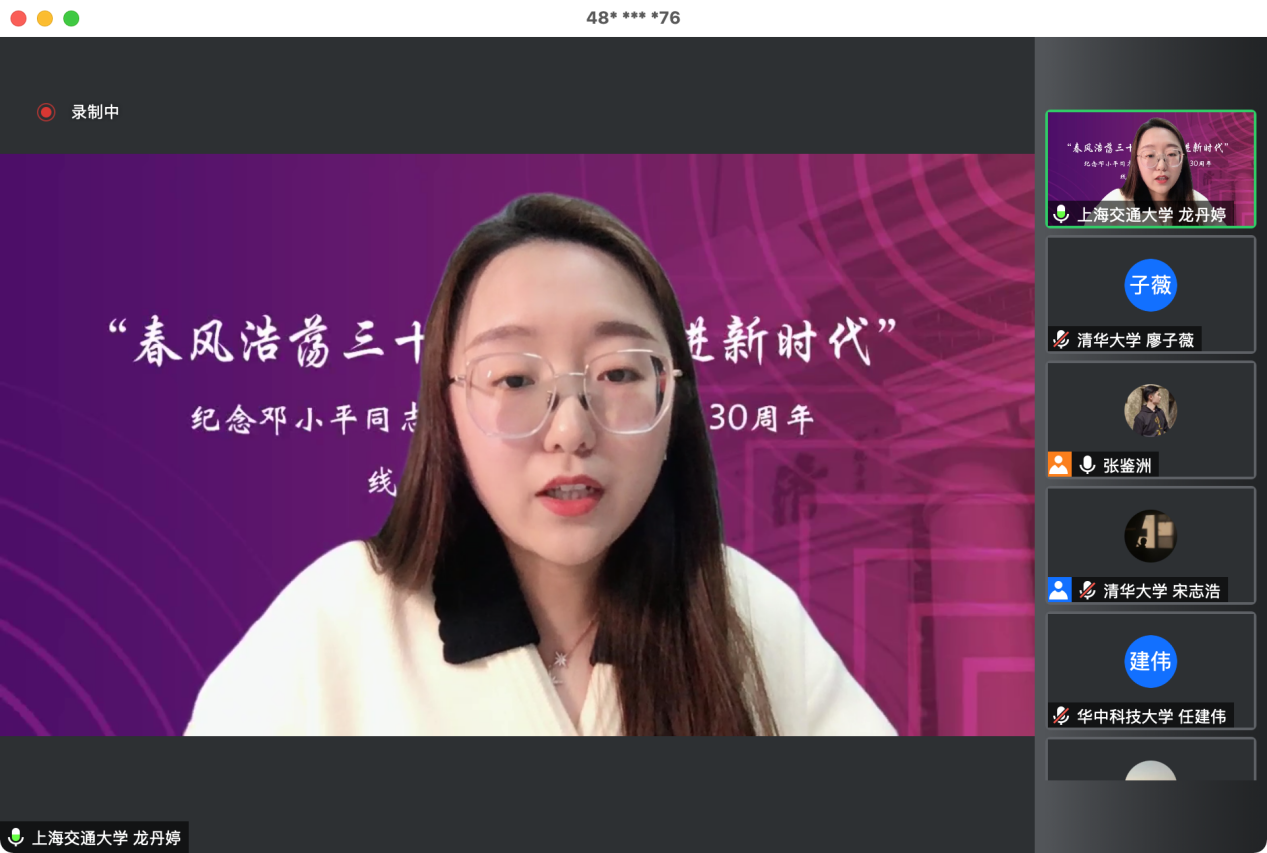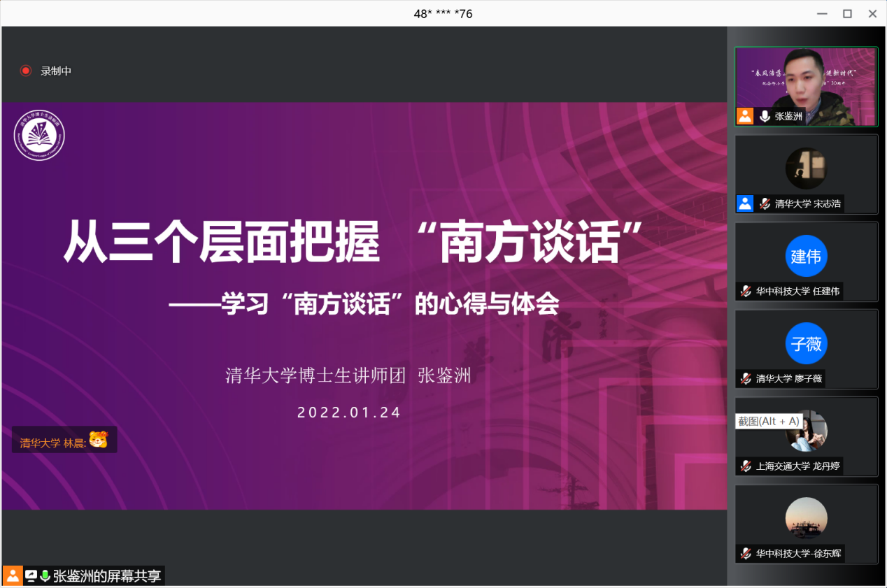 清华新闻网1月28日电 1月24日晚,乐竞(中国)一站式服务平台博士生讲师团联合上海交通大学国情研习理论宣讲团、复旦大学博士生讲师团、华中科技大学研究生红色理论学讲团举行“春风浩荡三十载,立言奋进新时代”纪念邓小平同志发表“南方谈话”30周年主题联学共建活动。