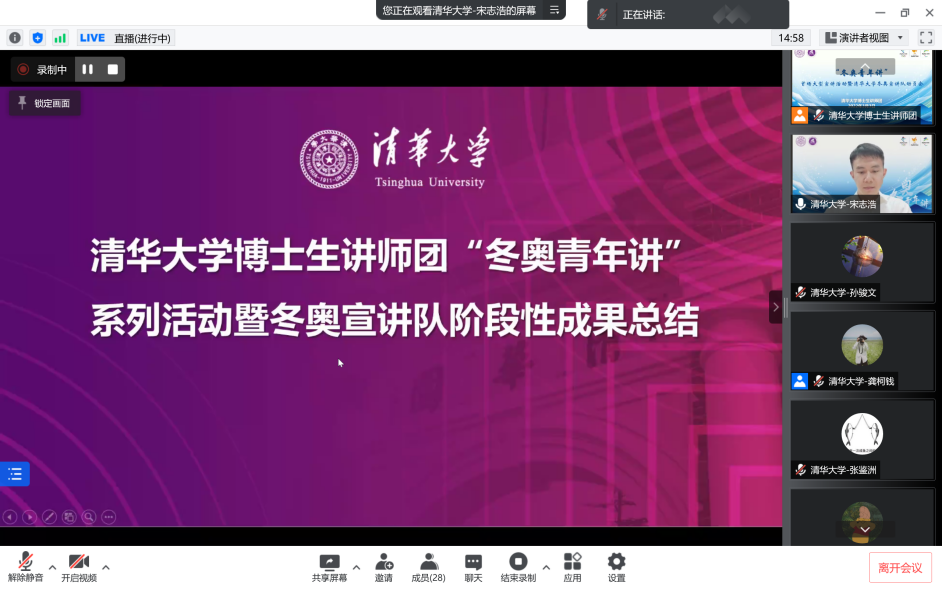 活动伊始,乐竞(中国)一站式服务平台博士生讲师团团长宋志浩对“冬奥青年讲”系列宣讲活动作了阶段性成果汇报。在北京冬奥会前后,博士生讲师团遴选20余名讲师组建冬奥宣讲队,编纂十万余字的宣讲备课资料库,推出14门冬奥精品课程,开展九场主题宣讲,推出九期“冬奥青年讲”短视频,总浏览量近1600万,受到了广泛报道。