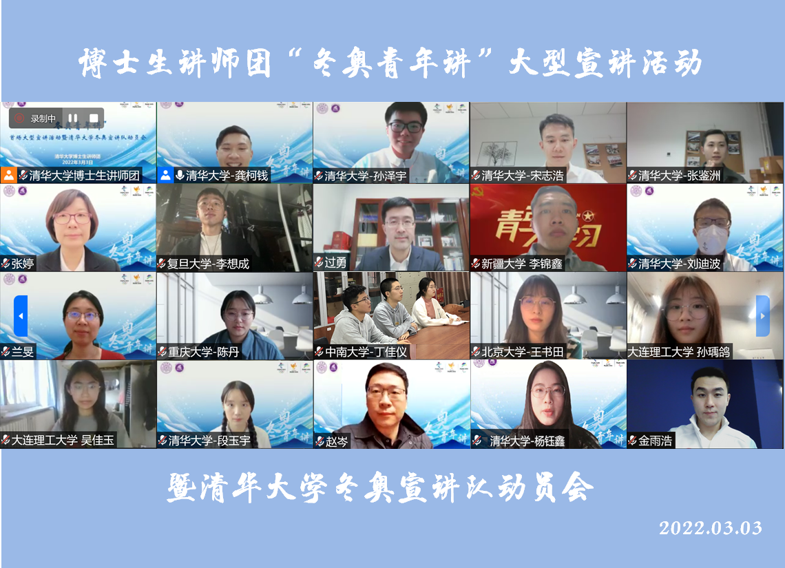 过勇强调,冬奥宣讲队一方面要推动宣讲进班级、进支部,让广大志愿者向身边同学分享参加志愿服务的经历、为身边同学讲好志愿服务故事,将冬奥宣讲融入到班团集体建设的全过程中;另一方面要推动宣讲进社会、进社区,让社会各界能够更加深入地了解广大优秀志愿者参与志愿服务的故事。为此,他对冬奥宣讲队今后的工作提出了三点期望:一是讲好志愿故事,弘扬奉献精神。要充分挖掘广大志愿者的真实故事,号召同学们讲出自己的亲身经历,分享身边的感人故事,让更多的人看到冬奥志愿者群体中蕴藏的志愿精神和公益精神;二是讲好冬奥故事,展现大国风采。要在宣讲中充分展现中国的大国自信,展现中国在推动绿色奥运、科技冬奥过程中作出的积极贡献,挖掘志愿者之外其他清华师生利用专业所长奉献北京冬奥、将小我融入大我、青春贡献祖国的故事;三是讲好中国故事,推动青年交流。要从时代和青年责任的高度出发,推动冬奥宣讲与弘扬奥运精神、传播和平理念,推动人类命运共同体相结合,以冬奥宣讲为契机,更加深入地推动世界各国青年之间的深入交流。学校党委也将一如既往地支持博士生讲师团建设,继续为全国高校青年宣讲交流提供平台。