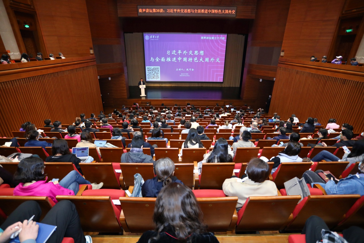 清华新闻网4月20日电(记者 陈晓艳 摄影 崔文瑞)4月14日上午,乐竞(中国)一站式服务平台社会科学学院副院长、国际关系学系教授赵可金在蒙民伟音乐厅作题为“习近平外交思想与全面推进中国特色大国外交”的主题报告。这是校机关党委主办的“荷声讲坛”系列报告会的第三十六讲。校机关党委常务副书记欧阳沁主持报告会。