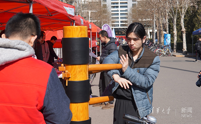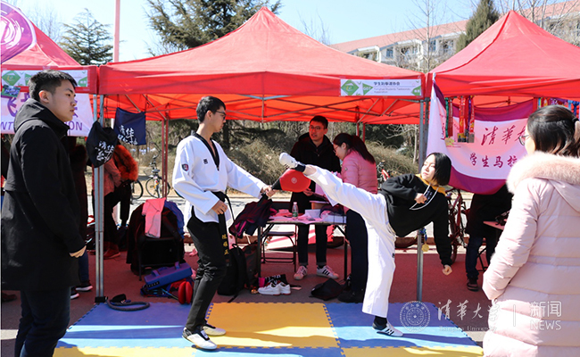 无体育,不清华。体育类社团展示一向给“百团大战”增添了运动的活力,而同学们更是积极踊跃,尝试丰富多样的体育运动。学生跆拳道协会会长计算机系大四学生陈雅正说,“百团”招新就是在茫茫人海中一个个地找到志趣相投的人。经过上学期的尝试后,大家可能会更清楚自己的爱好与需求,他很期待和本学期新加入的跆协会员们开启春季学期的崭新旅程。