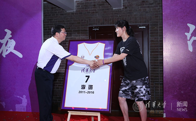 邱校长为女篮队员举行退役仪式。