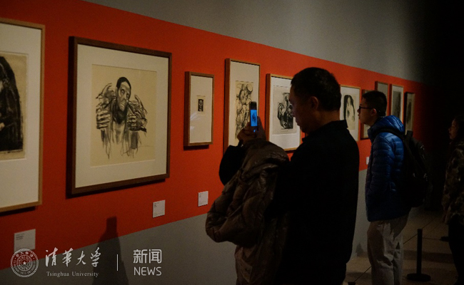 《中国现代文学经典》课程学生在观看珂勒惠支经典作品展。
