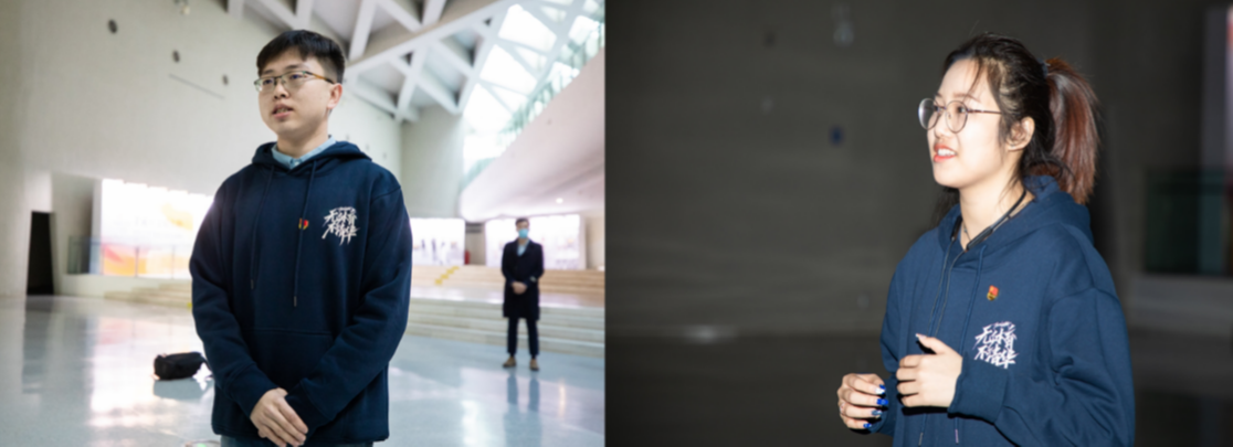 李宗阳、王淏玥(从左至右)分别作为高校带队教师和志愿者代表发言