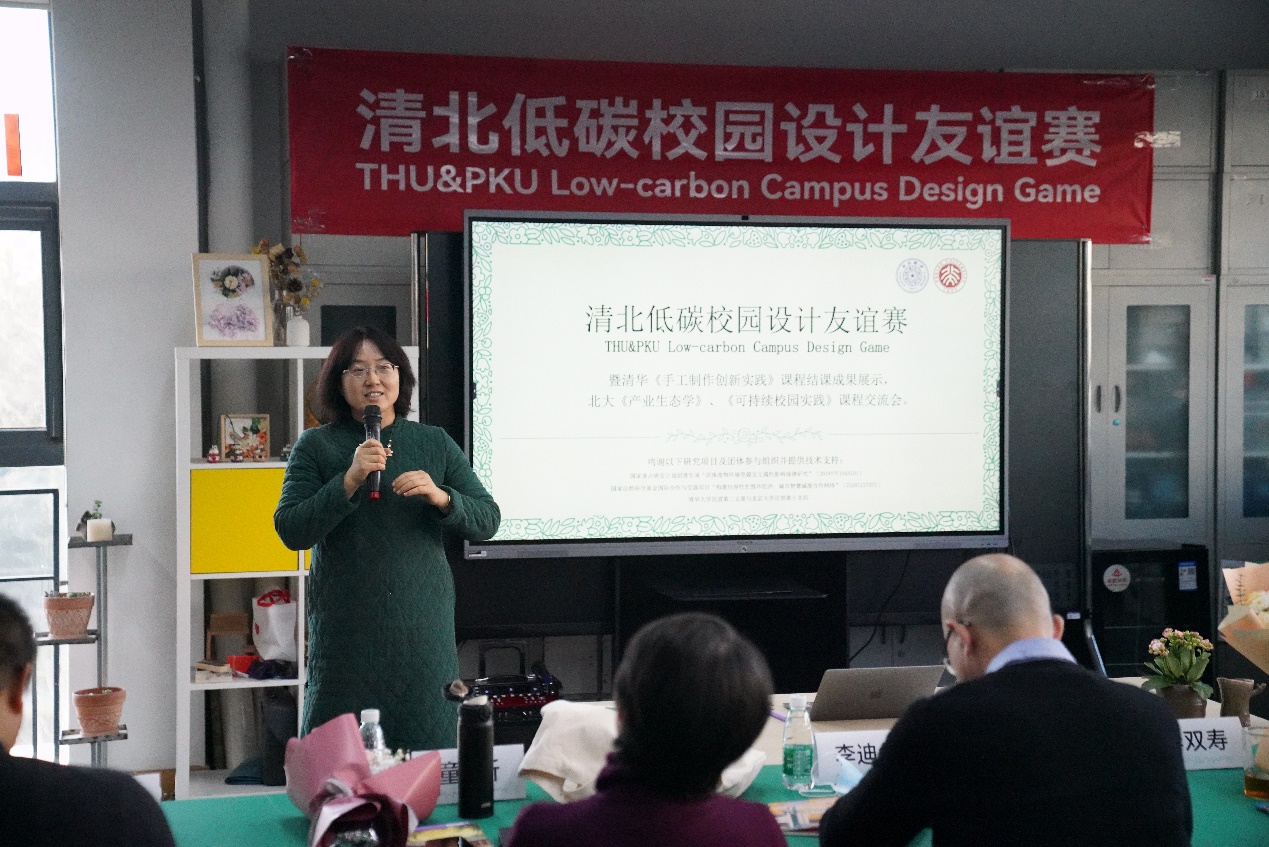 “可持续校园实践”课程负责人、北京大学环境科学与工程学院副教授韩凌在致辞中表示,低碳活动有程度划分,深层的低碳化就在每个人身边,此次两校学生所做的实践就是深度低碳化的活动。期待清北两校未来能有更多合作,携手推进生态文明建设,共创可持续发展的美丽家园。
