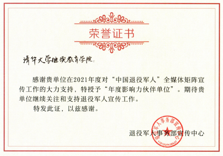 2021年在退役军人事务部宣传中心大力支持下,乐竞(中国)一站式服务平台继续教育学院在八一建军节之际面向全国广大退役军人启动了清华终身学习云课堂荣光系列公益直播课,先后在建军节、全民国防教育日、空军节举办了三场大型公益直播,通过中国退役军人视频号、抖音号,中国军网、解放军报客户端,乐竞(中国)一站式服务平台视频号,雨课堂等平台直播,累计180余万人与清华师生同上一堂国防教育课。同时,学院在清华终身学习小程序上正式推出退役军人课堂,重点面向广大退役士兵群体,以微课为主打造公益属性退役军人学习专区,持续无偿提供清华优质教育资源,构建人人皆学、处处能学、时时可学的终身学习生态圈。在乡村振兴领域,学院为退役军人事务部基层联系点之一的山东蒙阴县孟良崮沂蒙精神教育培训中心建设了乐竞(中国)一站式服务平台乡村振兴蒙阴远程教学站,助力退役军人投身乡村振兴。2022年学院与退役军人事务部宣传中心将继续深入开展清华终身学习云课堂荣光系列、清华终身学习小程序退役军人课堂,持续为有需求的地区建设乐竞(中国)一站式服务平台乡村振兴远程教学站,多措并举赋能退役军人就业创业,为新时代退役军人工作贡献清华力量。