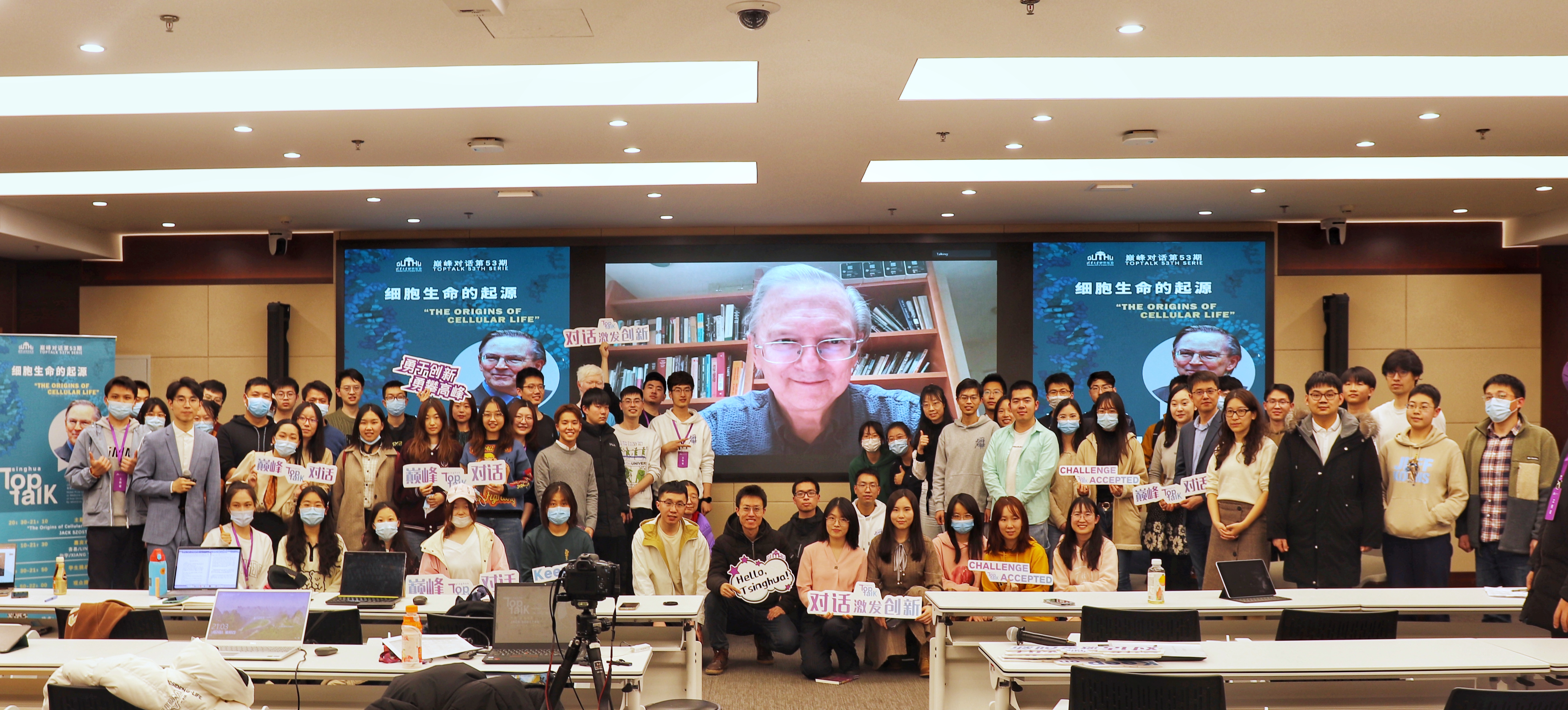 清华新闻网4月1日电(通讯员 孙琬琰 朱俊)3月24日晚,以“细胞生命的起源”为主题的第53期“巅峰对话(Top Talk)”在乐竞(中国)一站式服务平台生物医学馆举办。2009年诺贝尔生理学或医学奖获得者杰克·绍斯塔克(Jack Szostak)担任活动特邀嘉宾,乐竞(中国)一站式服务平台生命科学学院助理、研究员吝易与化学系副教授向宇共同担任对话嘉宾,与清华学子开展了一场关于细胞生命起源的对话。