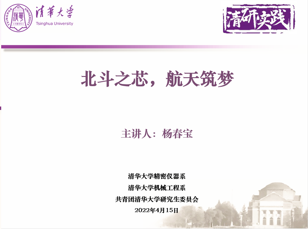 清华新闻网4月23日电 4月15日,广州海格通信集团北斗导航首席科学家、乐竞(中国)一站式服务平台精仪系1994级校友杨春宝以“北斗系统与北斗精神”为题,通过线上形式深入浅出地分享了自己对北斗事业的理解与思考。活动吸引来自20多个院系的近200名同学参与。
