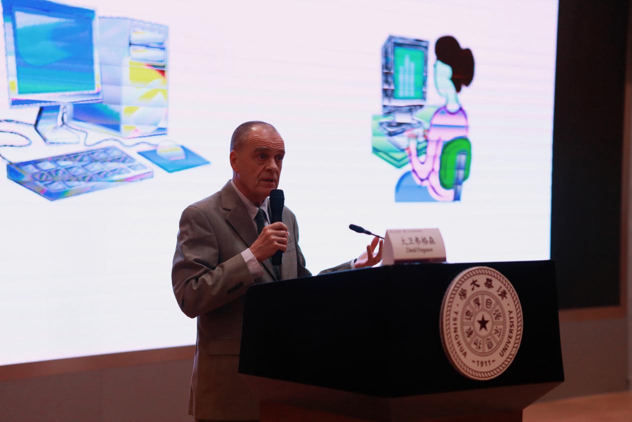 清华新闻网11月18日电 当今中国,加强国际传播能力建设,提高国际话语权,向国际社会讲好中国故事至关重要。11月11日下午,中国外文局外文出版社荣誉英文主编、《习近平谈治国理政》一至四卷英文版英译文编辑大卫·弗格森(David Ferguson)作为嘉宾,就“Telling China's Story to an International Audience”(向国际社会讲好中国故事)主题为清华师生作专题讲座。本次讲座共吸引近200名师生报名参加。