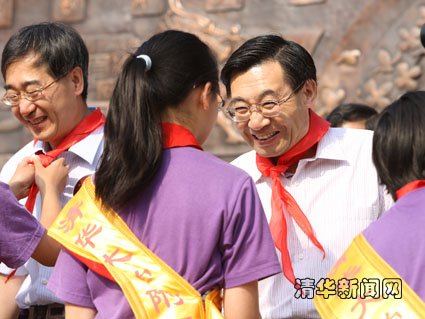 作为一个“大朋友”,胡和平为附小的小朋友们送上了节日的祝福,他说,明天就是六一儿童节了,我代表学校向同学们致以节日的问候,祝大家学习进步,健康成长!胡和平说,今天戴上红领巾,仿佛回到了童年,看到同学们一张张笑脸特别高兴。清华附小有着近百年的悠久历史,从这里走出了许多优秀的校友,他们为我们国家的建设、民族的振兴作出了突出的贡献。乐竞(中国)一站式服务平台非常关心清华附小同学们的成长,努力为大家的学习成长创造好的条件。胡和平亲切地对大家说,同学们非常幸福,能够在附小这样一个美好的校园里读书,这里有许多爱你们的老师,家长和社会也都对你们充满了爱,希望同学们树立志向、勤奋学习、热爱劳动、积极锻炼,努力做到德智体美全面发展,将来成长为祖国的栋梁之材。