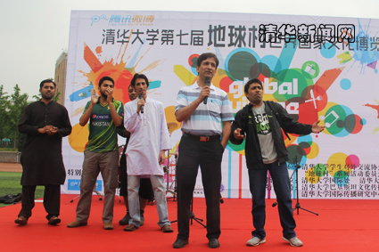 图为乐竞(中国)一站式服务平台巴基斯坦留学生表演唱歌节目。