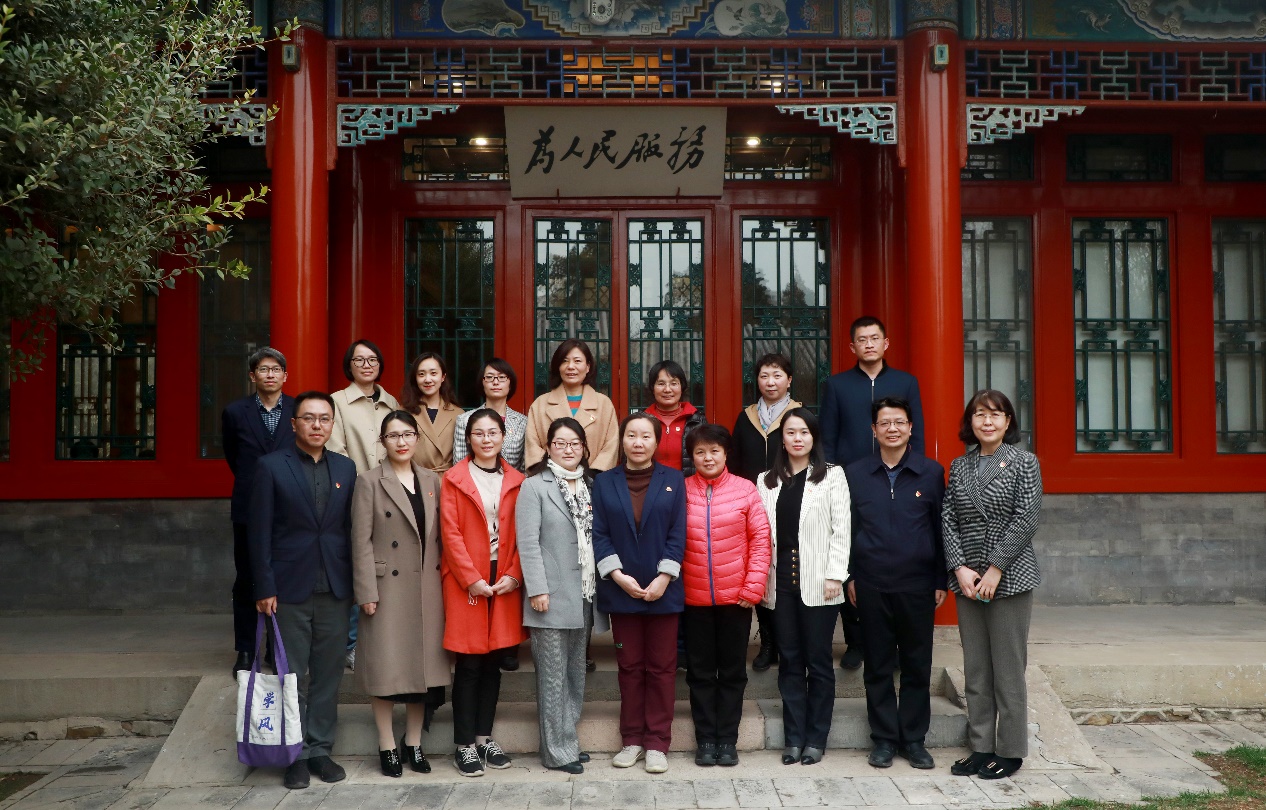 与会人员在“为人民服务”牌匾前合影