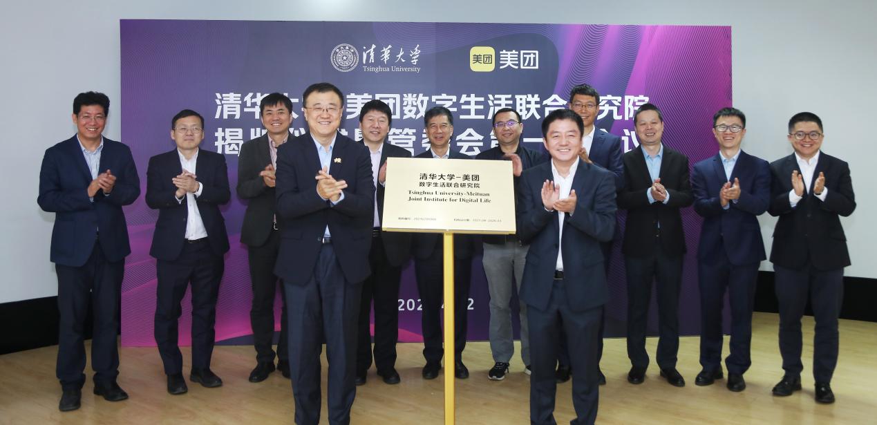 仪式上,杨斌和王慧文共同为清华美团数字生活研究院揭牌。