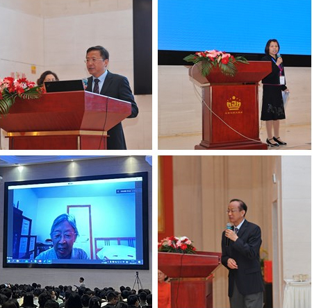 姜朋明、姜艳萍、钱易、胡洪营分别致辞(从左至右 从上至下)