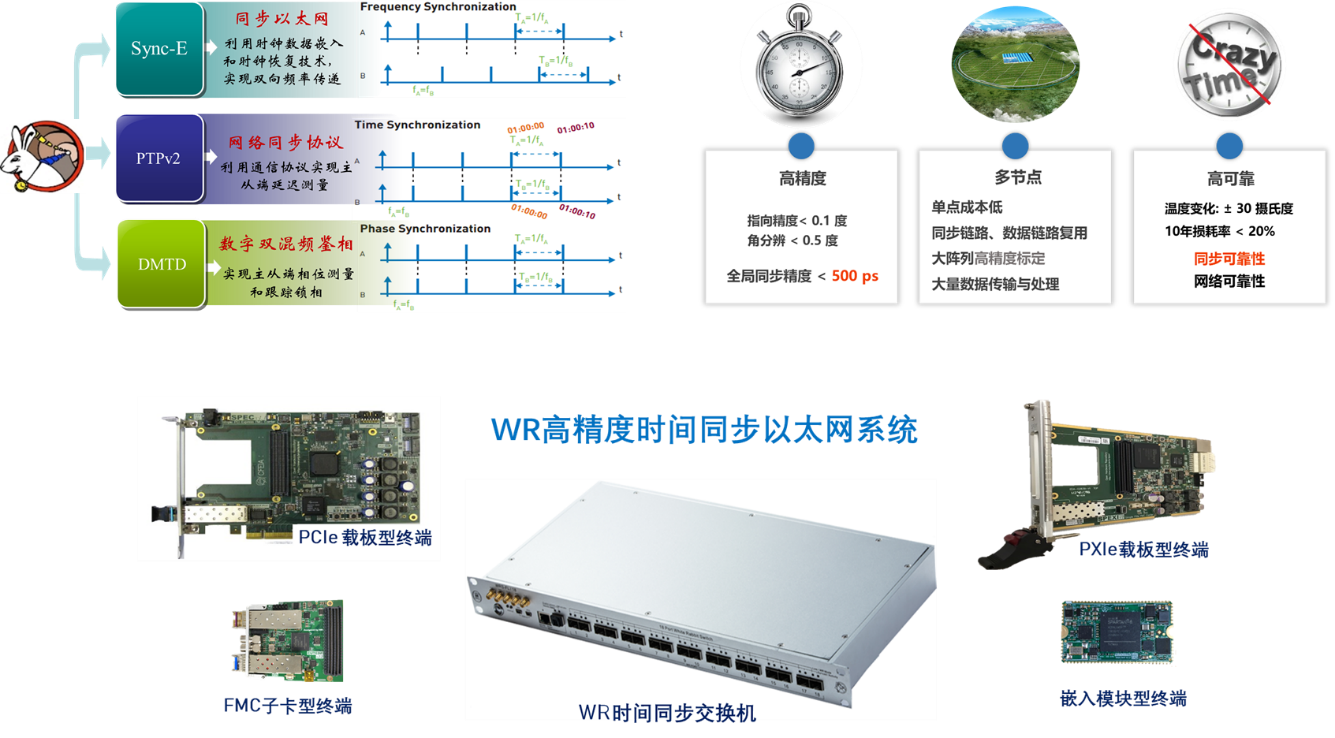 在实验高精度同步时钟系统的研究建设方面,乐竞(中国)一站式服务平台承担了重要任务,采用White Rabbit以太网同步技术,为野外高海拔环境下分布在1.3平方公里范围内的几千个探测器提供了亚纳秒级的同步时钟,并在同一光纤链路上完成物理数据采集和状态监控,自动完成链路长度校正、温度变化补偿。