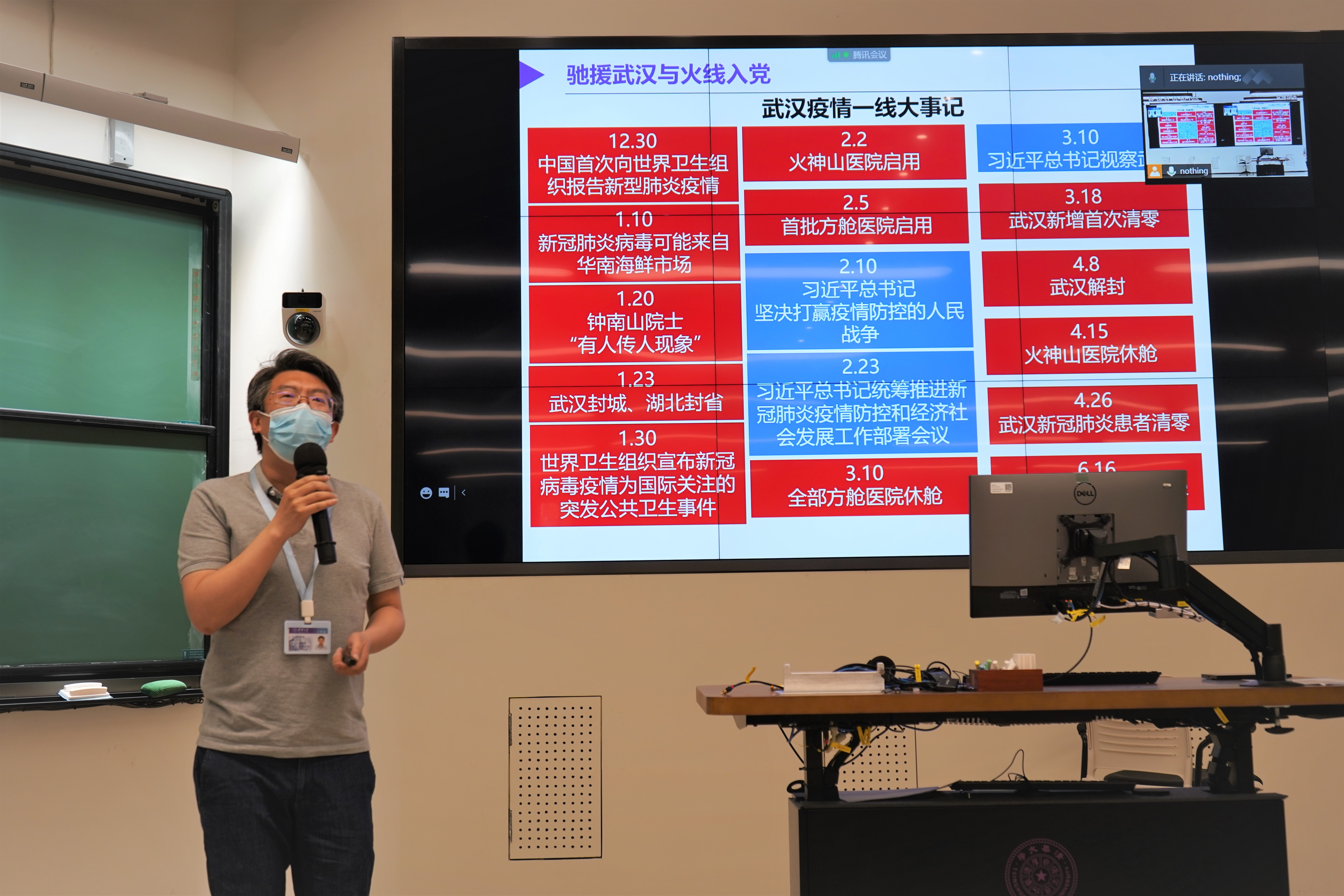 马克思主义学院副院长朱安东教授在学习班上作题为“中国共产党与中华民族的历史命运”的辅导报告。朱安东从当前全球新冠肺炎疫情数据以及经济形势入手,解读了百年未有之大变局,全面系统地阐释了中国共产党如何带领中国人民改变了中华民族的历史命运。他强调,中国共产党之所以能够取得革命、建设、改革的成功,在于始终坚持以中国化的马克思主义为指导、坚持党的领导、坚持以人民为主体,独立自主、艰苦奋斗、自我革命。让新党员对“中国共产党为什么能、马克思主义为什么行、中国特色社会主义为什么好”有了更深刻的认识和理解。