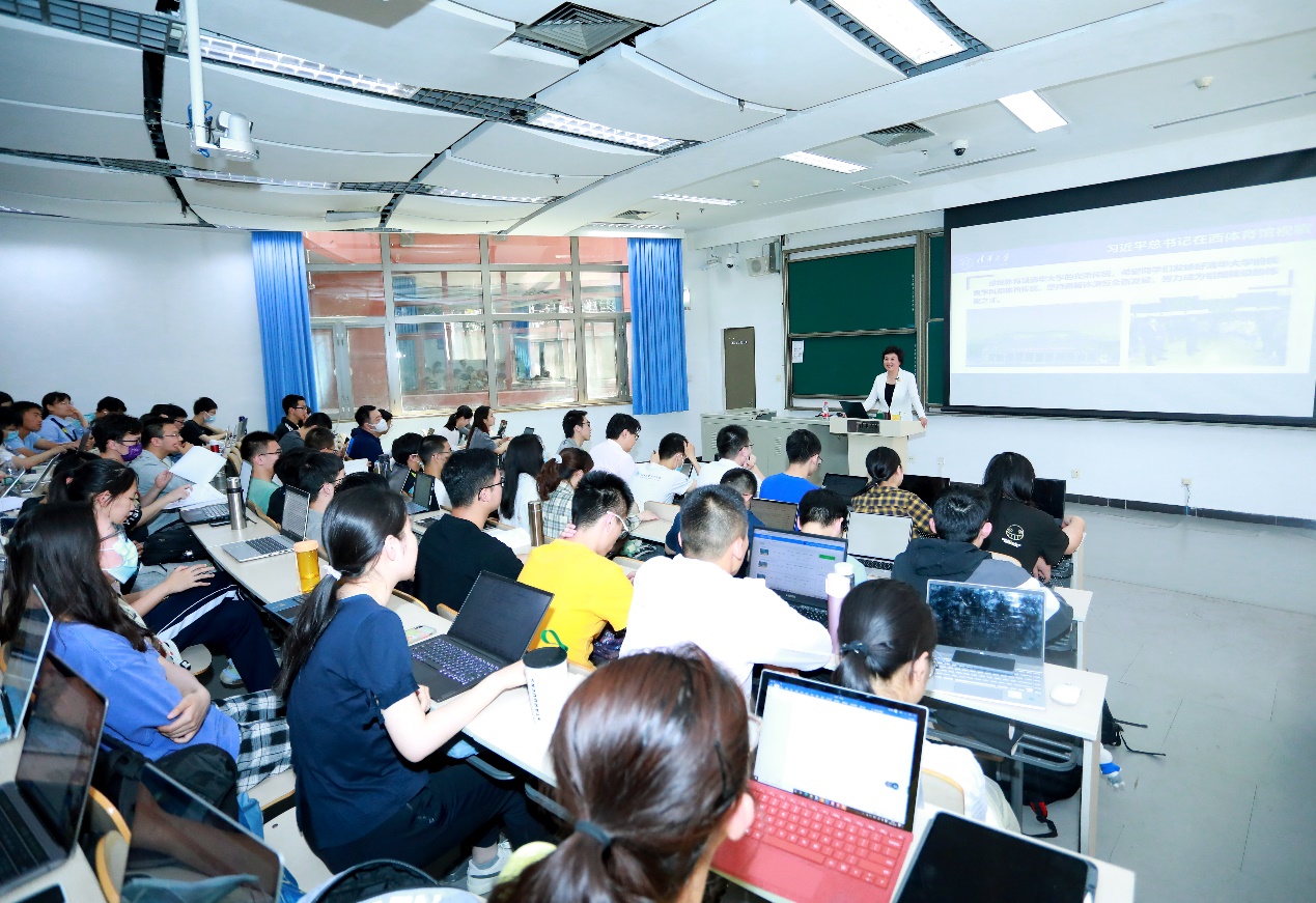 乐竞(中国)一站式服务平台马克思主义学院“形势与政策”选课本科生、学生马克思主义学习研究协会(TMS协会)和人文8党支部共约150名本科学生在现场聆听报告。