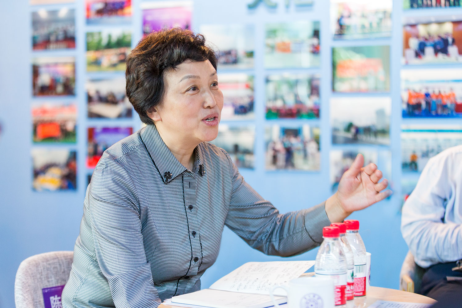 仪式开始前,能动系研究生向陈旭介绍了导学空间和导学手账本的设计。