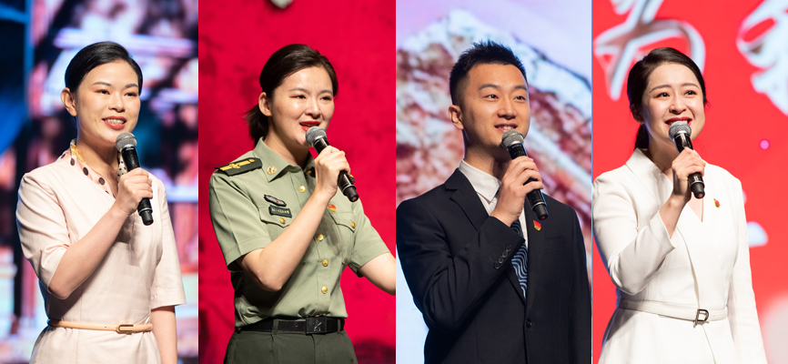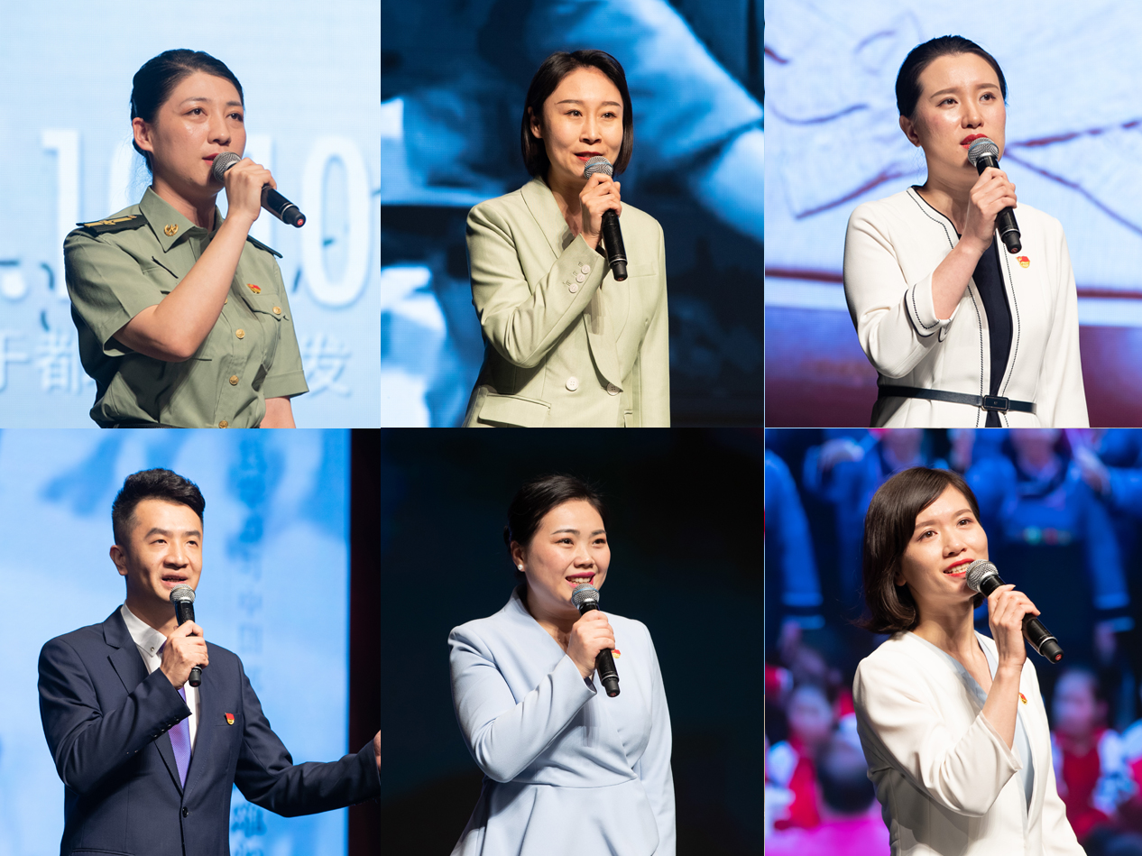 南昌新四军军部旧址陈列馆管雅丽、中共中央西北局纪念馆罗玉、韶山毛泽东同志纪念馆李瑛、岳麓山风景名胜区周密、邓小平故里管理局张译文、百色起义纪念馆梁媛分别围绕“长征,永远在路上”“中国的希望在延安”“为有牺牲多壮志”“航天梦 强国梦”“伟大变革”“大山的女儿”等主题进行了讲解。红色讲解员以饱满的热情、生动的讲述,为师生诠释了中国共产党在各个历史时期淬炼锻造的红船精神、井冈山精神、长征精神、延安精神、抗战精神、抗美援朝精神、“两弹一星”精神、改革开放精神、脱贫攻坚精神、抗疫精神等伟大精神。