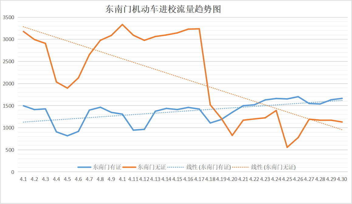 东南门4月份机动车通行情况
