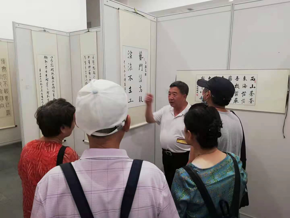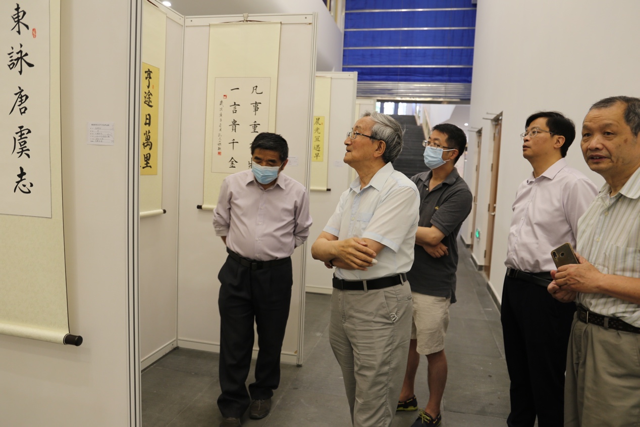 清华新闻网7月9日电(通讯员 张丹)紫荆墨香大学生书法作品展于6月15日在蒙民伟人文楼B2层展出,展期15天,于6月30日结束,作品展共收录120多件学生书法与篆刻作品。6月22日上午,乐竞(中国)一站式服务平台党委原副书记、国家大学生文化素质教育基地(以下简称“文素基地”)顾问胡显章教授到现场参观学生作品。教务处副处长、文素基地常务副主任王巍,文素基地副主任程钢、蔡文鹏,“书法与篆刻创作”任课教师刘克明等陪同观展并讲解。