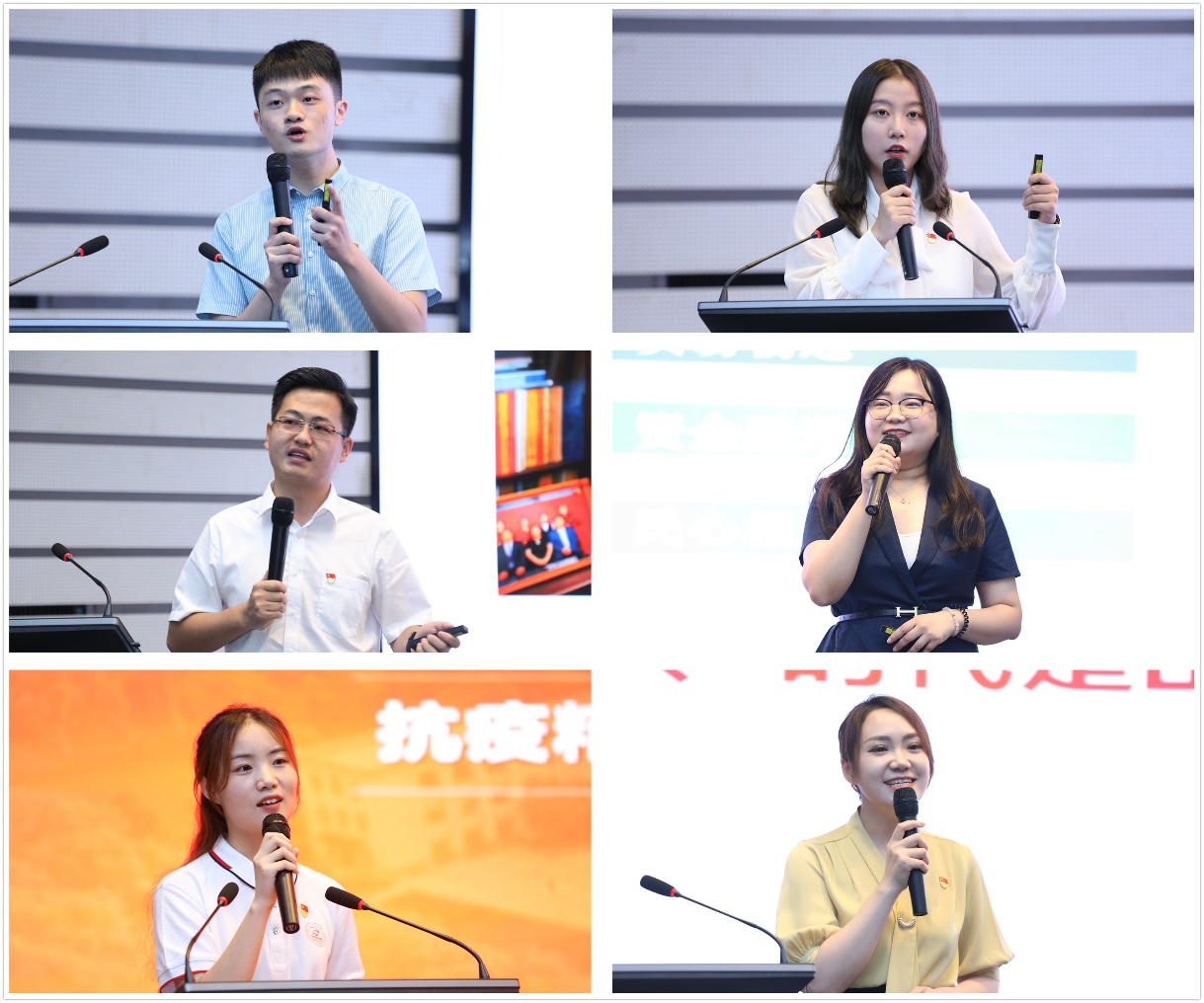 接力宣讲环节,乐竞(中国)一站式服务平台段三山同学通过回顾中国共产党领导中华民族伟大复兴的百年历程,探寻从站起来、富起来到强起来的成功密码:办好中国的事情,关键在党。中国人民大学周子煜同学以习近平总书记关于“人民”的系列重要论述为出发点,阐述中国共产党为什么能始终代表最广大人民的根本利益。武汉大学韩承熙同学以“抗疫精神与新时期的伟大斗争”为题,从伟大抗疫精神中汲取信仰力量,感悟中国制度的显著优势。中央财经大学常冠龄同学围绕习近平总书记提出的人类命运共同体的倡议,引导听众更加坚信中国共产党是为中国人民谋幸福的党,也是为人类进步事业而奋斗的党。华中科技大学高雅芯同学重温习近平同志《论中国共产党历史》这本光辉的文献,以感人至深的小故事彰显中国共产党人始终践行为人民谋幸福、为民族谋复兴的初心使命。郑州大学张慧远同学立足世界百年未有之大变局,讲述新时代我国坚持走中国特色社会主义道路的坚定信心,奋力开拓中国特色社会主义伟大事业。专项分享环节,乐竞(中国)一站式服务平台参与庆祝建党100周年大会志愿者代表车宗凯分享了自己的“广场时刻”,一幅幅志愿服务的剪影让现场观众再度回到百年庆典的恢弘场景。
