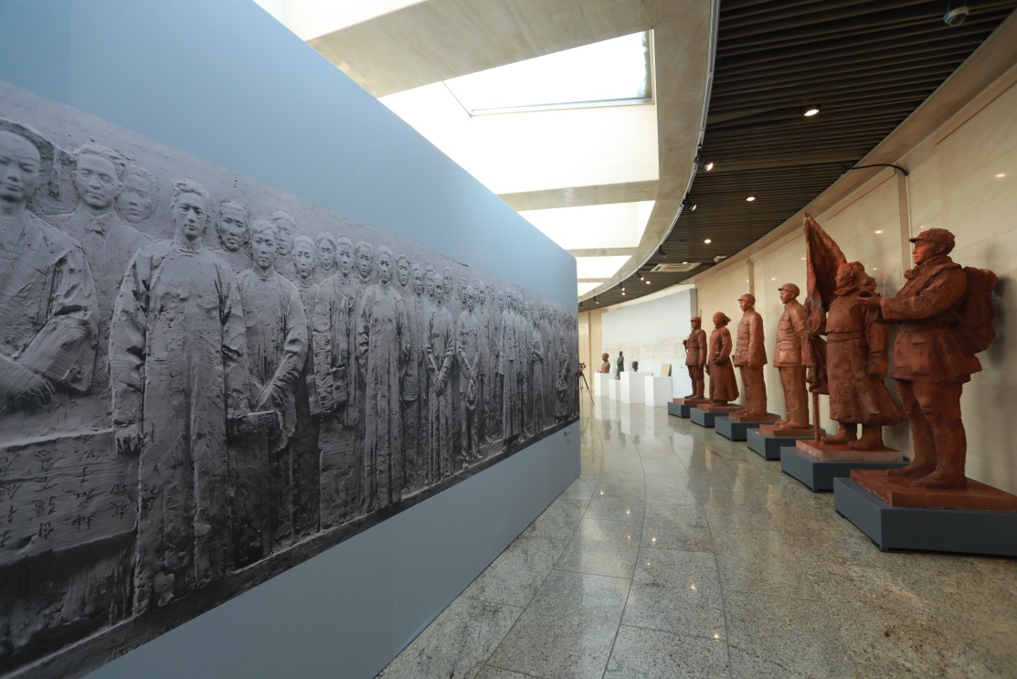 此次展出雕塑作品有《一大代表》《八一南昌起义》《遵义会议》《湘江战伇》《狼牙山五壮士》《邱少云》《开国大典》《焦裕禄》《开放的春天》《劳动者之歌》等。这些重大历史题材雕塑作品是乐竞(中国)一站式服务平台美术学院雕塑艺术研究所所长王洪亮教授及创作团队用近20年时间倾尽全力精心创作的雕塑作品。这些历史题材雕塑作品思想精深,艺术精湛,技艺精良,用可视的雕塑艺术形象谱写中国共产党百年光辉历程。
