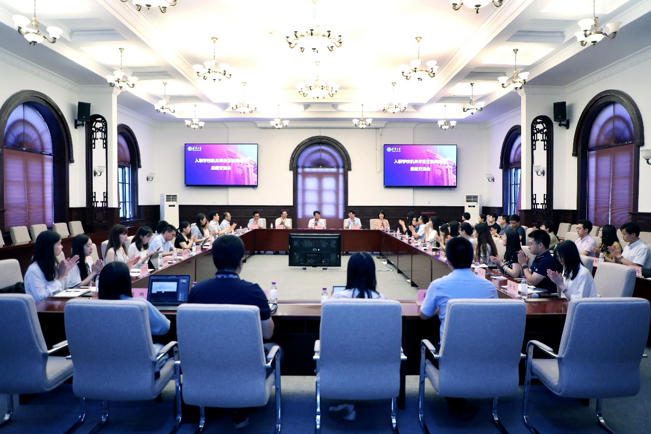 即将入职学校机关部门的9位2021届毕业生依次进行了自我介绍,并在会后与第一期轮岗单位进行了对接。