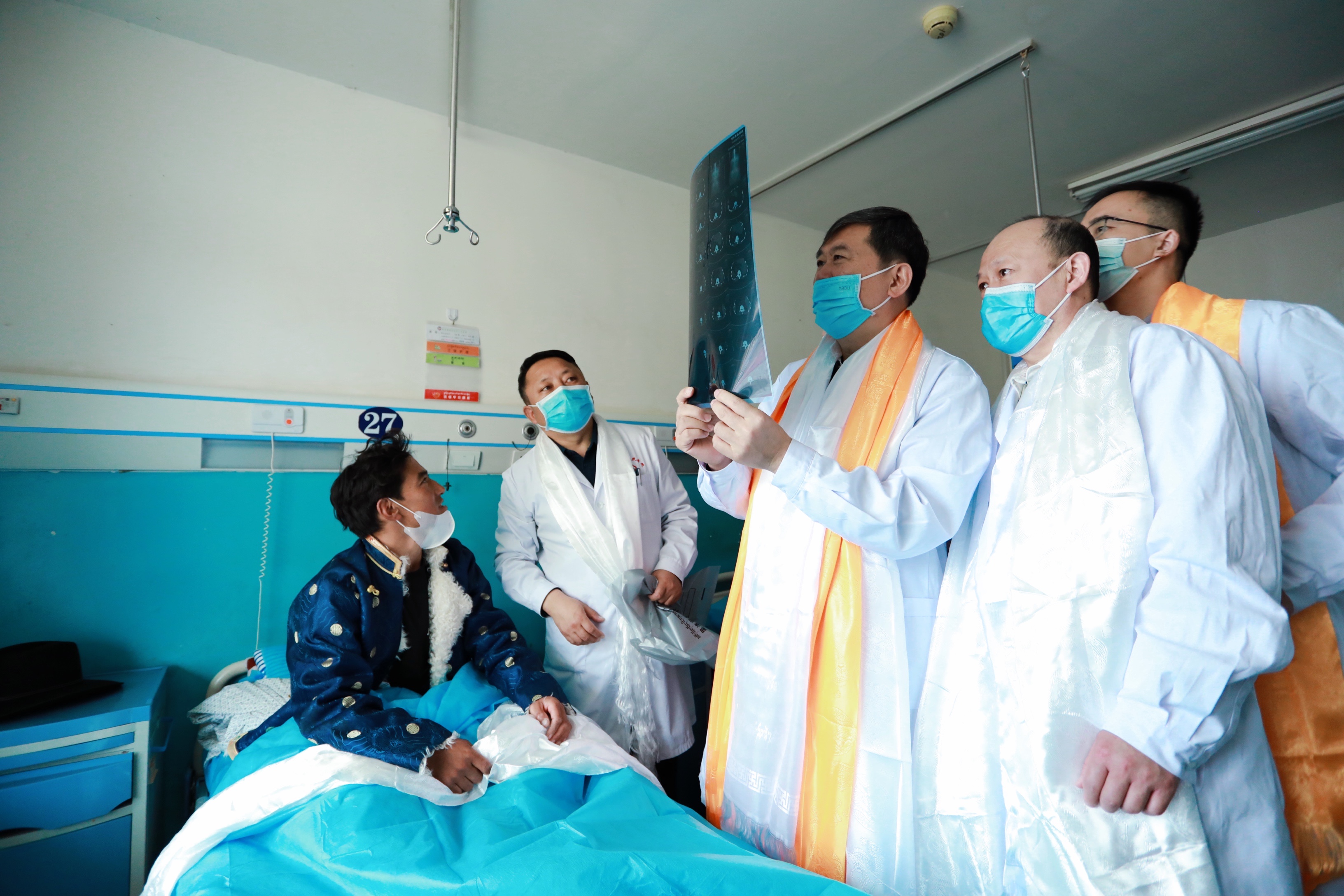 果洛这片土地,对于董家鸿及团队而言已经太熟悉了,十数年来不论临床工作多忙,他们每年都雷打不动地多次深入边远牧区开展义诊手术。曾接受过董家鸿肝包虫手术的小女孩旦正措听说董家鸿来了,专门赶到医院,为刚刚结束7小时手术的董家鸿送上了鲜花与邀请函。旦正措自2017年接受手术以来,至今没有任何复发迹象,手术非常成功。