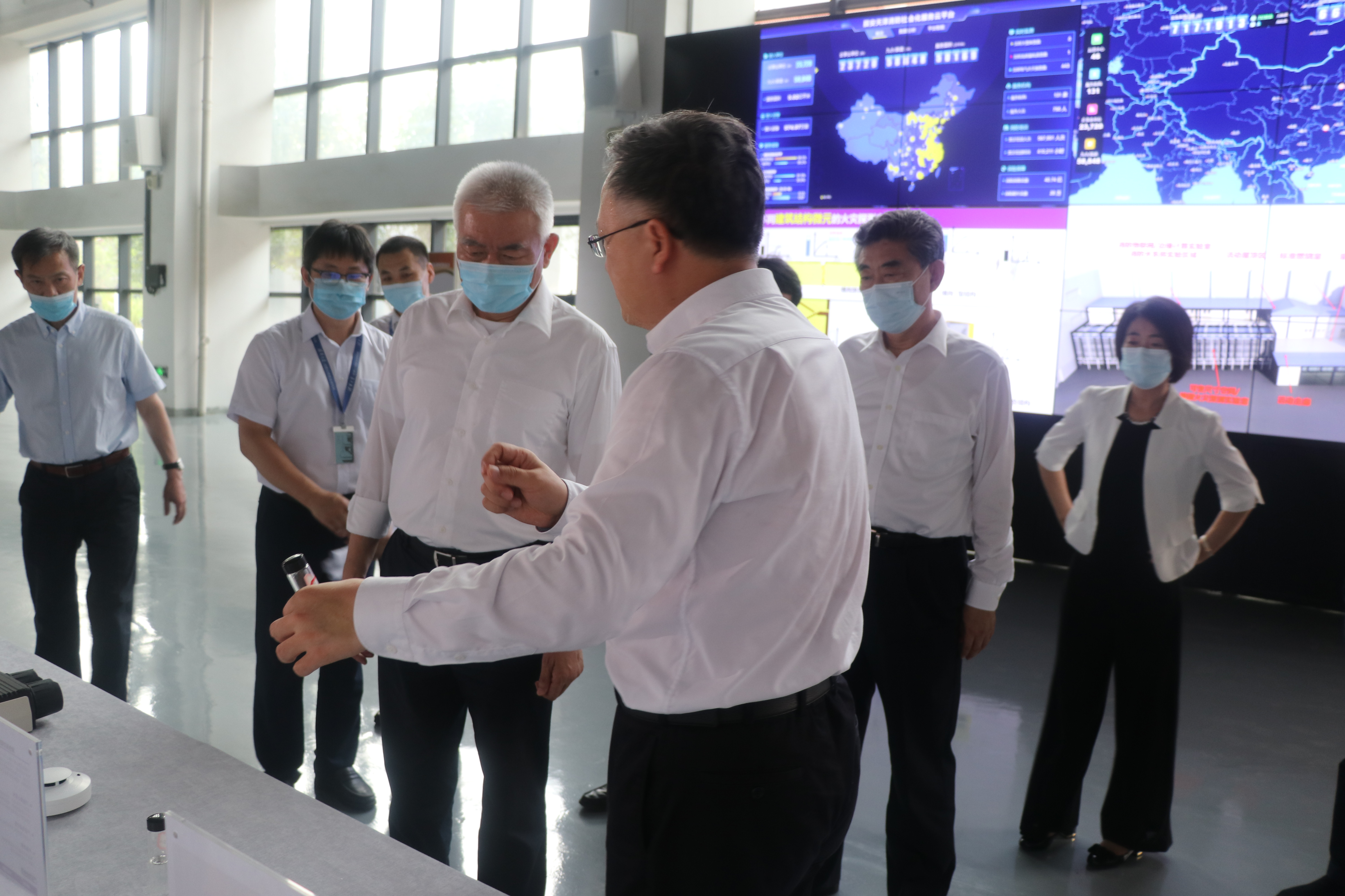 在指挥监测大厅,袁宏永向王志刚详细汇报了公共安全学科产学研用协同创新进展和国家城市基础设施安全技术创新中心培育建设情况。王志刚对清华合肥院长期以来积极响应国家战略需求、坚持产学研用一体化发展思路及取得的一系列探索实践和创新成果给予了充分肯定。他表示,希望清华合肥院继续发挥专业领域优势,抢抓技术创新、强化关键技术攻关,加快推进科技成果转移转化,积极融入国家新一轮科技创新体系布局,为打造国家战略科技力量、实现科技自立自强贡献更多的智慧和力量。