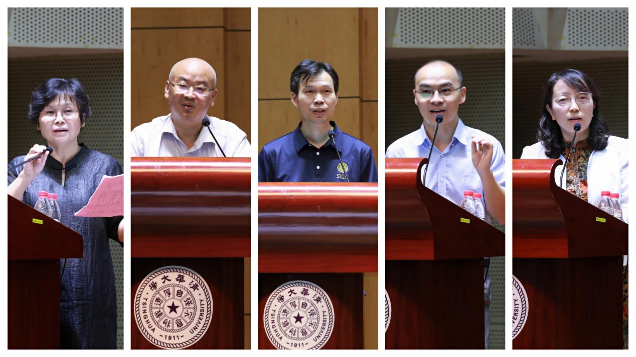 郑泉水、李泽湘、左剑恶、马岚、张传杰、陈伟坚(从左到右、从上到下)作专题发言