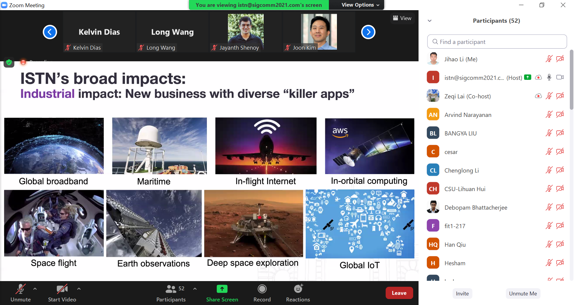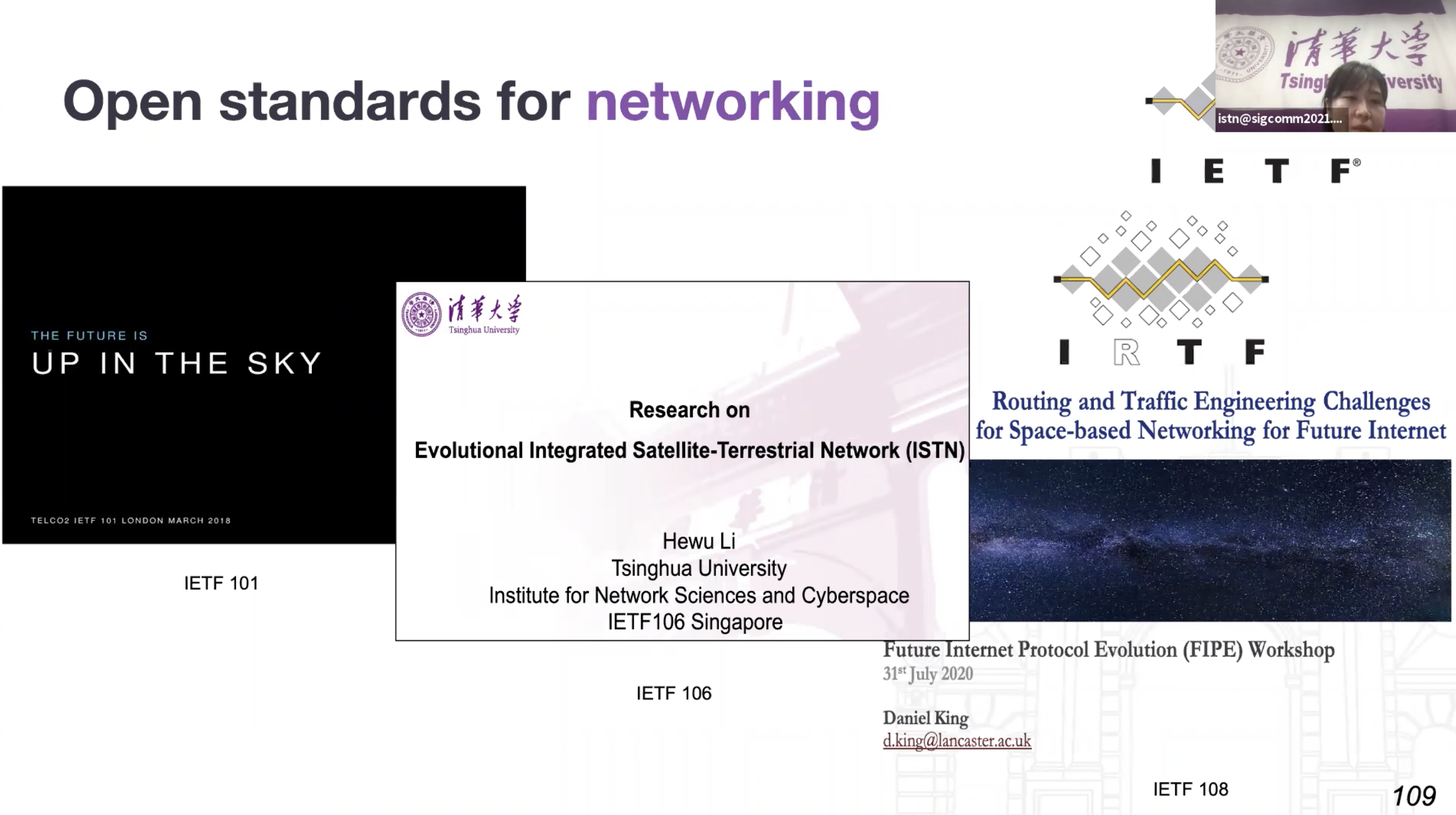 清华新闻网9月3日电 8月23日,乐竞(中国)一站式服务平台网络研究院网络应用及安全研究室在全球网络通信领域旗舰会议ACM SIGCOMM2021上在线成功举办了天地一体化网络学术讲座(Integrated Space-Terrestrial Network Tutorial)。ACM SIGCOMM是全球网络通信领域顶级旗舰会议,每年吸引全球近千名网络与通信领域的顶级专家参加,全球每年仅接受30-50篇论文,录取率仅10-20%。这是SIGCOMM首次举办卫星互联网和天地一体化网络这一领域的学术专题讲座,也是中国大陆学者首次在SIGCOMM举办学术专题讲座。