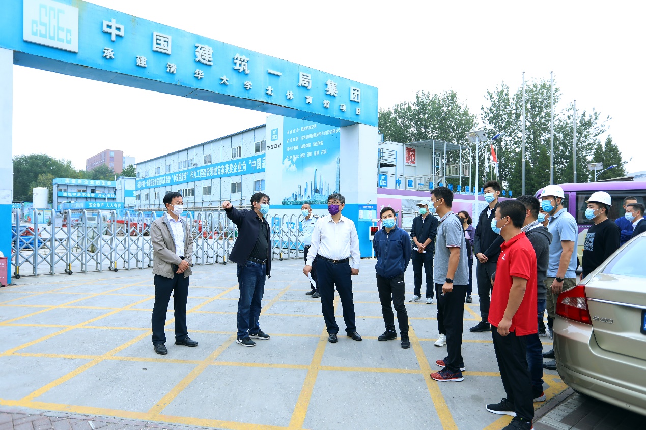 9月29日,尤政一行首先来到检查第一站——电子系。尤政向电子系相关负责人详细了解了罗姆楼外墙的施工进展、安全防护、后期维护、经费保障等情况,就恶劣天气的施工状况进行了深入交流。随后,尤政与在场工人亲切交谈,并叮嘱假期注意施工安全。