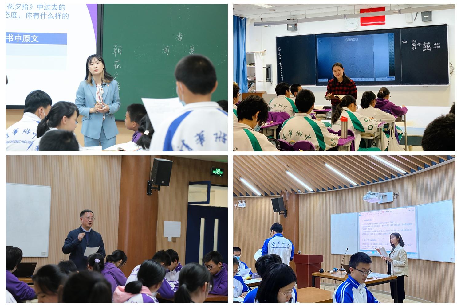 随后进入课堂教学视导环节,北京市基教研中心的专家团队走进清华附中初一至高三6个年级语文、数学、英语、物理、化学、生物、历史、地理、政治9个学科共26位教师的课堂,聆听教师的现场授课。