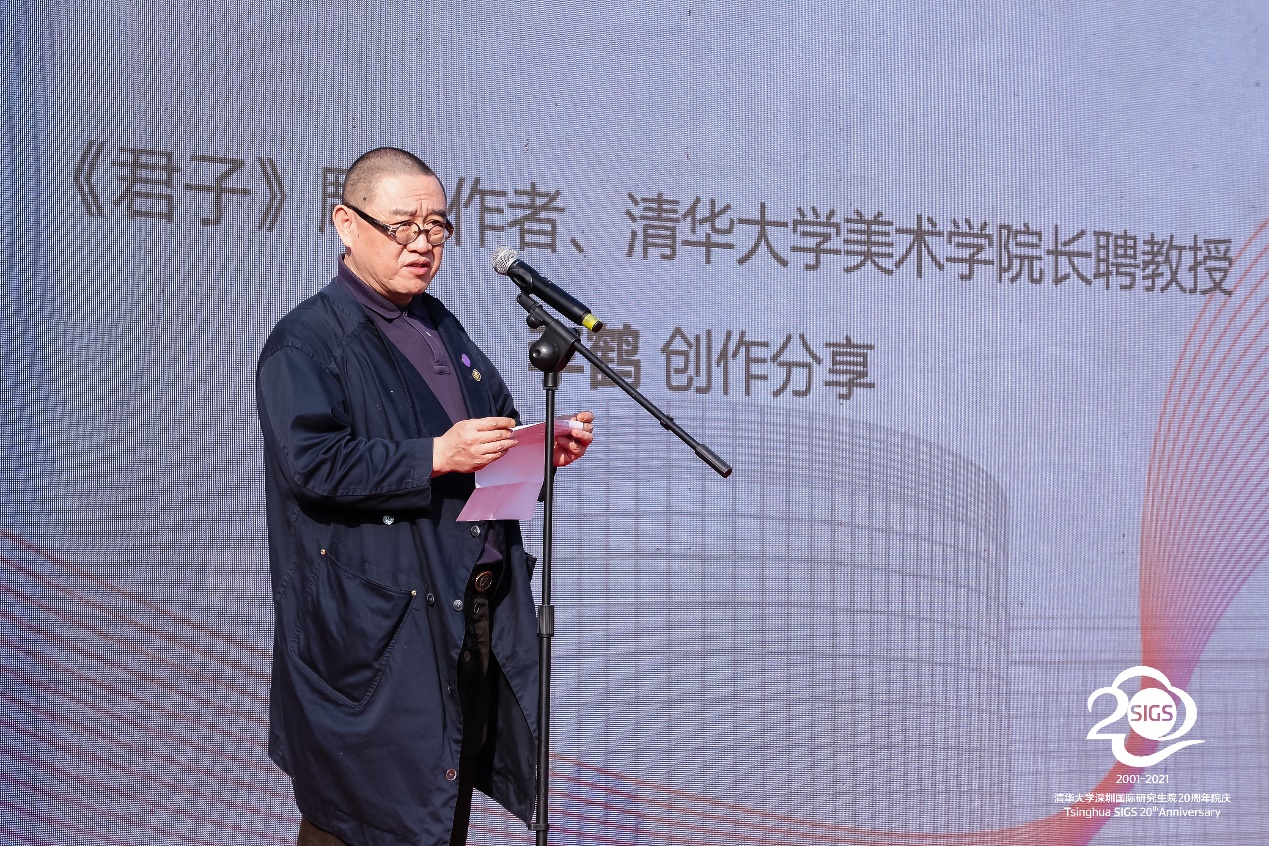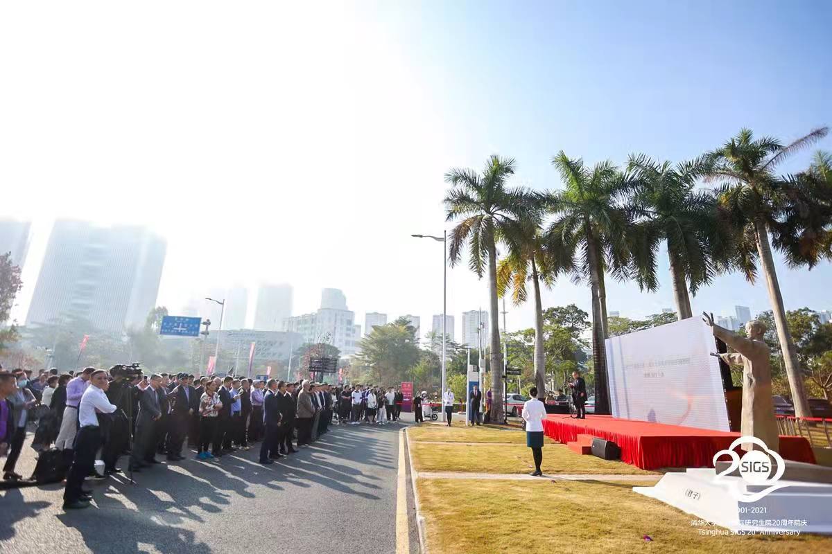 高虹在致辞中表示,今年是清华在深圳办学20周年,学院经历了从初创到发展的蜕变,进入了全新的发展阶段。为进一步在深圳校园中加强对清华文化环境的营造,今年4月,乐竞(中国)一站式服务平台深圳国际研究生院以清华校训为出发点,设立了“《君子》雕像”捐赠项目,项目得到了深圳市乐竞(中国)一站式服务平台校友会、乐竞(中国)一站式服务平台广州校友会、东莞市乐竞(中国)一站式服务平台校友会等的大力支持,共计320位校友参与捐款,使《君子》雕像得以在院内落成。诚挚期待未来能够继续携手广大校友,让清华精神和文化在南国扎根,一代代传承下去,为国家培养堪当民族复兴重任的时代新人。