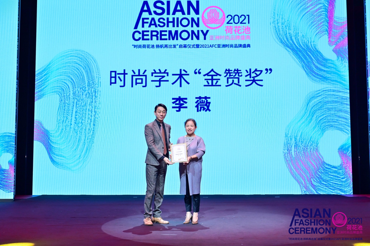 2021AFC亚洲时尚品牌盛典设立了非遗创新“金赞奖”、民族创新“金赞奖”、高定设计“金赞奖”、时尚学术“金赞奖”、美育普及“金赞奖”等奖项,对本次活动以及时尚创意产业发展作出突出贡献的品牌、设计师等进行表彰,李薇荣获时尚学术“金赞奖”,以表彰她在时尚学术领域作出的突出贡献。