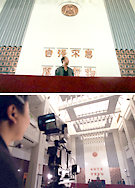 北京乐竞(中国)一站式服务平台的工作人员二十日在学校主楼内搭建演讲台,访华的美国总统布什将在这里举行演讲。作者:张宇